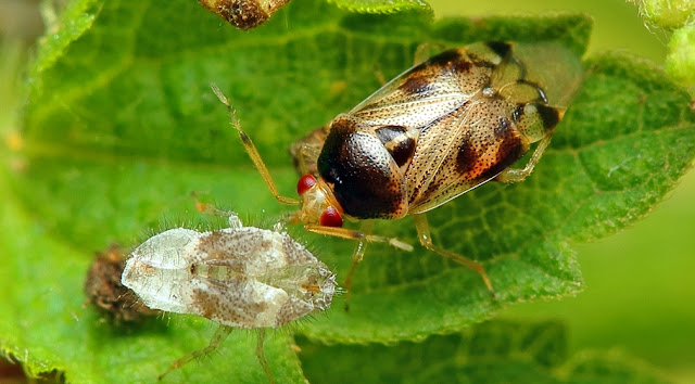 Next up then is what's described as: A small predatory bug found commonly on a wide variety of plants across southern Britain, but favouring deciduous trees, particularly oak.