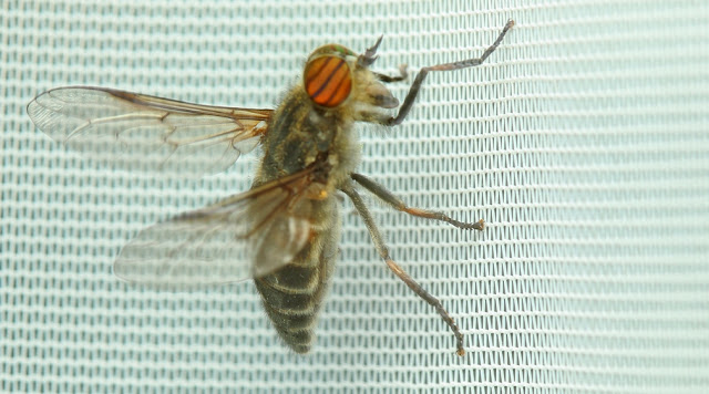 And this next fly flew right into the house and landed on the net curtain one day. I think (and you'll have noticed how I so often am not definite in my ID choices, because I am simply an amateur with an interest, not an expert) but I think this particular Horse-fly is most likely Tabanus sudeticus, judging by the markings and darkish appearance. Also known as the Dark giant horsefly or Dark behemothic horsefly (it IS quite large).